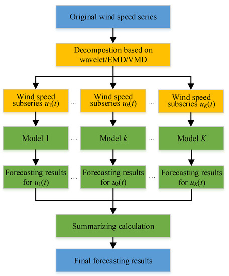 Framework of traditional decomposition–combination wind speed forecasting model.
