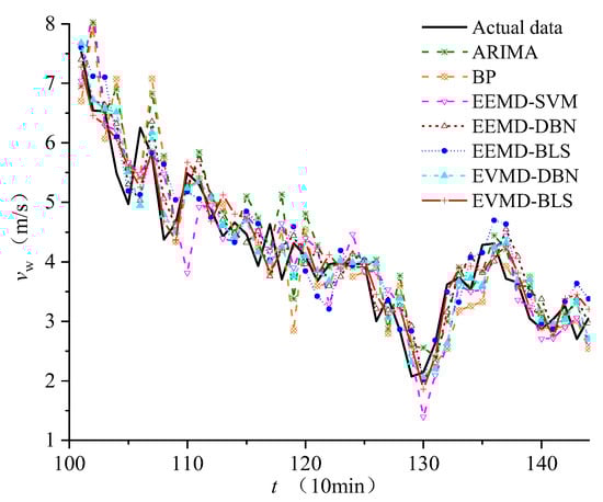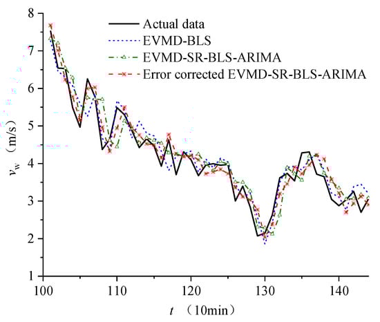 Wind speed forecasting results of EVMD-SR-BLS-ARIMA model.