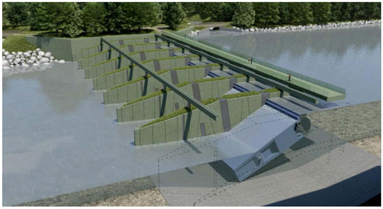 The proposed dam to manage the Bananal sedimentary basin water storage level is the Moveable Hydropower Power Plants (HEPP), as shown in Figure 16. This is a low-head dam in which the upstream level of the reservoir is equal to the level of the river during the wet period. There is no spillway because the water flows above and below the plant during the wet period. This also increases the theoretical head of the plant due to the Venturi effect caused by the spilled water [19]. Another benefit of this technology is that the sediments from the Bananal basin can easily pass through the bottom of the dam with no restriction during the wet period.