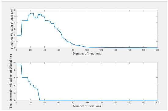 In the classical PSO algorithm, the inertia factor is a constant. The inertia factor plays different roles at different stages of optimization. For example, at the beginning of optimization, a larger inertia factor can enhance the global search capability, but at the end of optimization, a smaller inertia factor can enhance the local search capability. Therefore, a larger inertia factor at the beginning of optimization and a smaller inertia factor at the end of optimization can significantly improve the solving ability of PSO. It was also found that the rate of change in the inertia factor will greatly affect the global searching ability of PSO. Based on this, Feng et al. [40] proposed to continuously adjust the inertia factor with the help of the skip line function during the optimization process. The inertia factor has a larger value and changes slowly at the beginning of the iteration, and has a smaller value and changes quickly at the end of the iteration, which facilitates the PSO to switch from global optimization to local optimization gradually. The skip line function is shown in Equation (10):