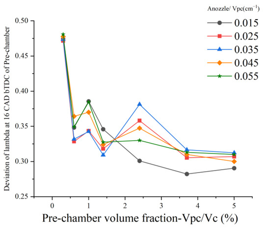 We firstly demonstrate the validation and limitations of our simulation experiment by comparing them with the experimental results found in Ashish’s work for different excess air ratios in the pre-chamber and main chamber [35] (Figure 7).