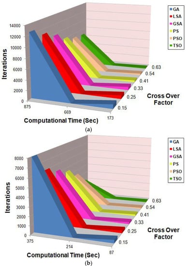 The combination time for the TSO technique corresponds to the level of emphasis performed. As the quantity of cycles rises, so do the execution time and the rate at which the results increase. Instances of the combination reaction of PV modules with 40-watt and 200-watt appraisals are displayed in Figure 6a,b.