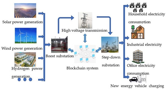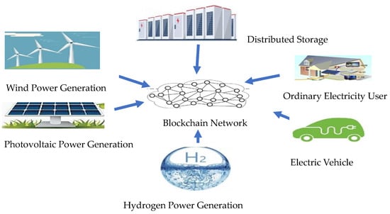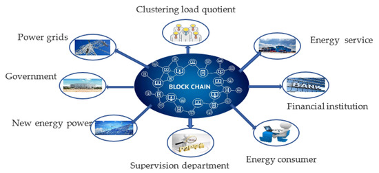 With the development of blockchain technology, the pace of its integration into the energy market and its continuous innovation is accelerating. Figure 5 shows a schematic of the application of blockchain technology in the energy market [42]. In the future, energy blockchain will form a model of a small “physical-network + large information network + side chain auxiliary network”. Energy generation enterprises, government regulatory departments, and various groups will operate in the system of the energy alliance chain [43].
