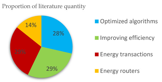 - Studies have been carried out on energy routers in the transmission and distribution networks. For example, Gong et al. [88] studied the operation of energy routers in the transmission and distribution networks with high permeability renewable energy access. In addition to applying blockchain technology to combine the energy flow quality of service index with the independent cooperation mode of the energy router nodes, the autonomous energy cooperative optimization mechanism and control flow of the router nodes in the power transmission and distribution network were designed. Simulation results show that this scheme can improve the output of routing nodes and optimize the transmission and distribution network.