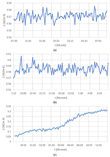 For the individual substances filling the casing pipes under investigation, the thermal conductivity measurement results are shown in Figure 4.
