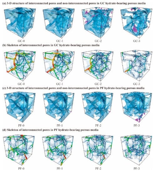 - Hou, J.; Ji, Y.; Zhou, K.; Liu, Y.; Wei, B. Effect of hydrate on permeability in porous media: Pore-scale micro-simulation. Int. J. Heat Mass Transf. 2018, 126, 416–424. [Google Scholar] [CrossRef]