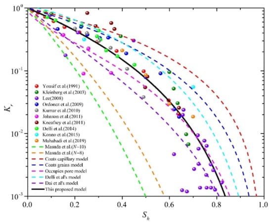 - Figure 3 shows the permeability reduction curves with varying hydrate saturation depicted by these mentioned above reservoir simulator used models. The research methods, the advantages and limitations, the using parameters and their physical meaning of various reservoir simulator used models, and the factors that models consider are also provided. Table 3 lists the methods, advantages, and limitations of these reservoir simulator used models of HBSs, while Table 4 summarizes the characteristics of these reservoir simulator used models for permeability prediction of HBSs.