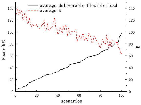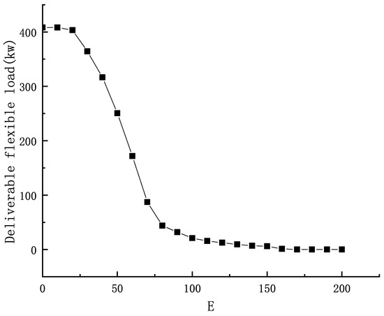 According to Figure 4, the flexible load resources provided by users decrease with the increase of user energy consumption preference coefficient E. Users with can provide a large amount of FL, and such users do not exist or have less default behavior (the saturated region). refers to some users who can provide part of the deliverable FL. Such users have certain breach of contract ( the linear region). users cannot provide FL (the dead region).