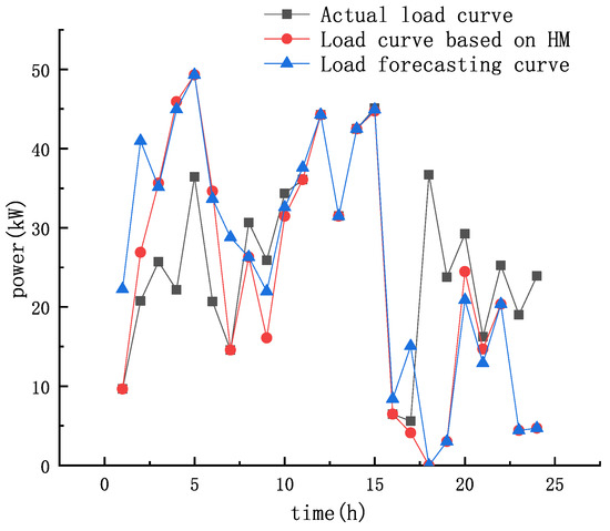 In order to further analyze the influence of herd mentality on user response decision-making, the flexible load usage of users 5–7 is calculated and compared with the flexible load usage of users 5–7 without considering herd mentality and the flexible load usage of users 5–7 under ideal conditions of community managers. A comparative analysis is carried out, as shown in Figure 7.