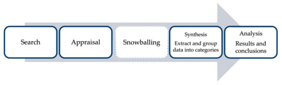 In performance of the second phase of the SALSA framework, “Appraisal”, papers of identified results were browsed and abstracts and reports were read. It was subsequently assessed whether the research found were appropriate for further analysis. A total of 19 articles were qualified for the synthesis phase. Similarly to [], the “snowballing” technique was added to the SALSA framework and performed after appraisal. According to [], the snowballing technique may be defined as using the references and citation of papers in order to find more relevant papers.