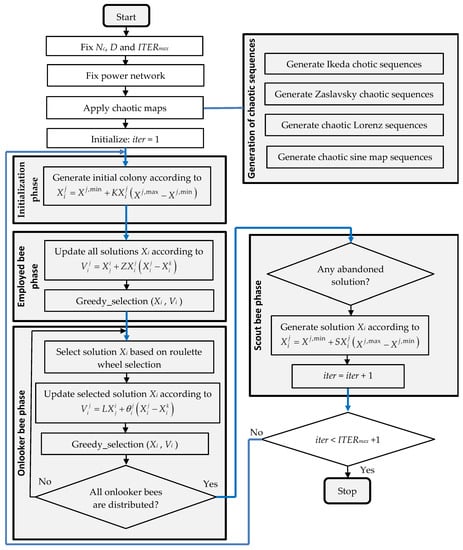 The steps of the suggested hybrid chaotic maps-based ABC (HCABC) technique are summarized in Figure 5.
