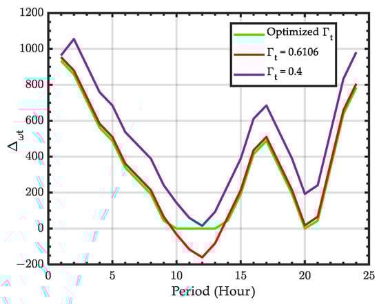 The Weibull distribution function is frequently applied for describing randomness of WP in power scheduling problems [,,]. For example, this function has been used in [] to determine the mean of the wind turbine output in one hour. In this study, the Weibull distribution function is adopted to calculate the minimum and maximum values of the tolerance that the power balance constraint cannot be met. Then, this tolerance will be updated at each hour, based on the system spinning reserve. Then, the corresponding WP output can be determined.