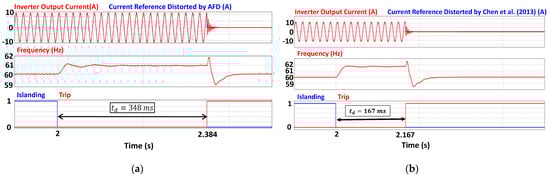 - Chen, W.; Wang, G.; Zhu, X.; Zhao, B. An improved active frequency drift islanding detection method with lower total harmonic distortion. In Proceedings of the 2013 IEEE Energy Conversion Congress and Exposition, Denver, CO, USA, 15–19 September 2013; pp. 5248–5252. [Google Scholar] [CrossRef]