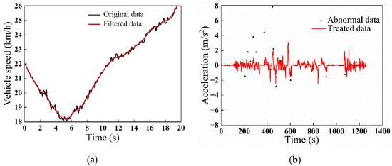 - The NDS data were collected from the OBD−II interface via CAN bus with the rate of 10 Hz. This sampling frequency satisfies the requirement of transient process analysis. The sliding-window averaging filter and the box diagram method were used to improve the data quality. Eleven indexes were selected to evaluate the driving behaviour, including vehicle running data, driver operation data and power consumption of the vehicles.