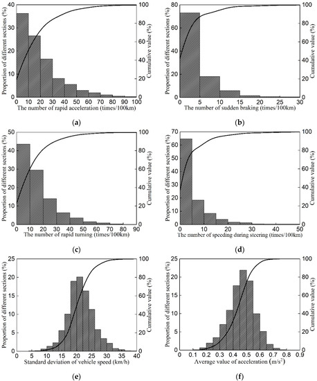 - Feng, F.; Bao, S.; Sayer, J.R.; Flannagan, C.; Manser, M.; Wunderlich, R. Can vehicle longitudinal jerk be used to identify aggressive drivers? An examination using naturalistic driving data. Accid. Anal. Prev. 2017, 104, 125–136. [Google Scholar] [CrossRef] [PubMed]