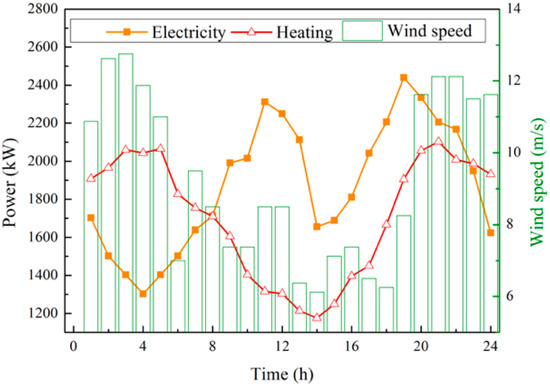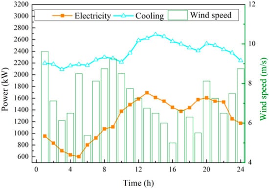 Figure 6 show the inputting of the data of the wind speed, electricity, and cooling loads of a typical summer and winter day, respectively. In both seasons, the rated power and operational power of each device should be optimized simultaneously. The comparison of the model with and without the off-design characteristics can be carried out through the optimal results in different seasons and is implemented with the program in Fortran.