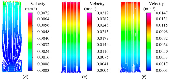 (a) Streamline distribution in the fluid domain of the two-level cylinder under condition (a). (b) Streamline distribution in the fluid domain of the two-level cylinder under impact 0.01 s. (c) Streamline distribution in the fluid domain of the two-level cylinder under impact 0.02 s. (d) Streamline distribution in the fluid domain of the two-level cylinder under impact 0.03 s. (e) Streamline distribution in the fluid domain of the two-level cylinder under impact 0.04 s. (f) Streamline distribution in the fluid domain of the two-level cylinder under impact 0.05 s.