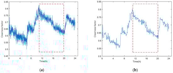 Comparison diagram of cleanliness factor curve of economizer before (a) and after (b) denoising by using wavelet threshold theory.
