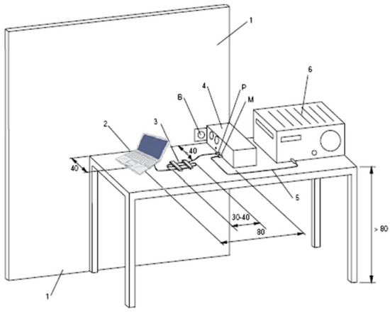 In order to test the CEs due to the portable equipment, represented by a laptop, the testing procedure was applied, with the measuring receiver in compliance with testing Standard CISPR 16-2-1 [28], imposing a frequency range of (0.15–30) MHz, with the following requirements: