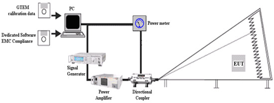 Schematic with the equipment used for measurement in GTEM cell 750 [36].