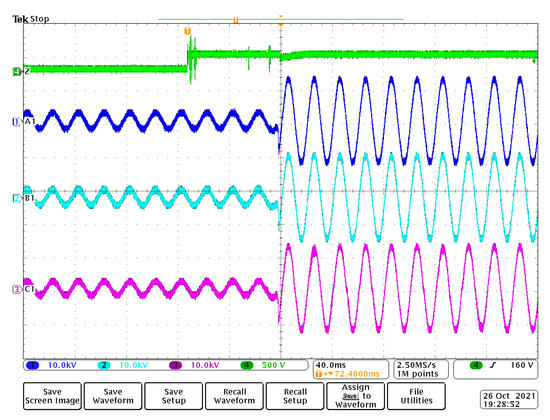 Oscilloscope diagrams of the four channels by closing the contacts of the MV circuit breaker supplied with MV AC EMF.