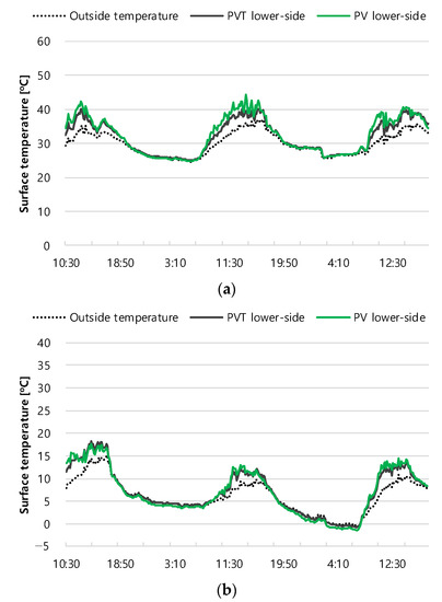 Lower surface temperature of the panels: (a) summer; (b) winter.