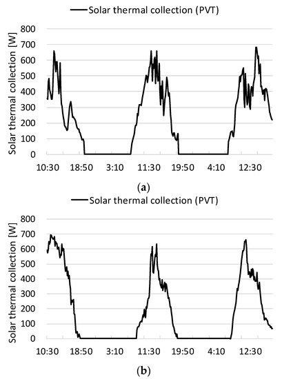 Thermal collection by PVT panel: (a) summer; (b) winter.