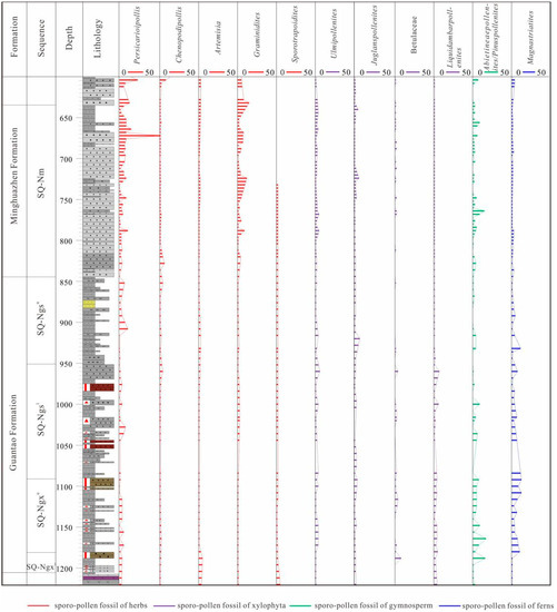 The paleoclimate was analyzed by sporo-pollen fossils of well SS1. One hundred ninety packages of cuttings at 356 m–1696 m of this well were analyzed. The appraisal institution is the Laboratory of Stratigraphy and Paleontology at the Research Institute of Exploration and Development, Shengli Oilfield Company, Sinopec. The detection equipment was a binocular biological microscope, and the appraisal results were based on the national classification standards SY/T5915-2000.