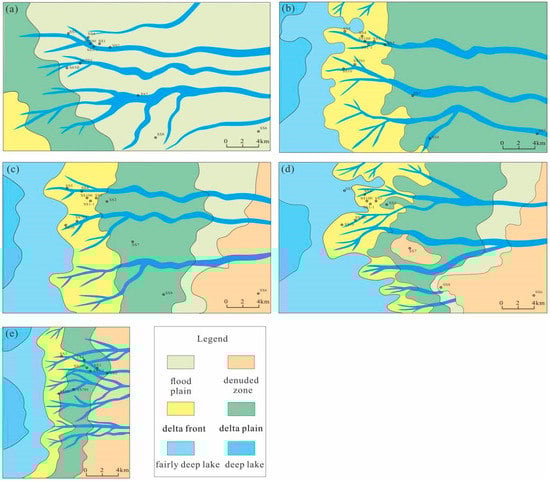 4.3.2. Distribution Characteristics of Sedimentary Facies