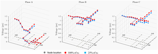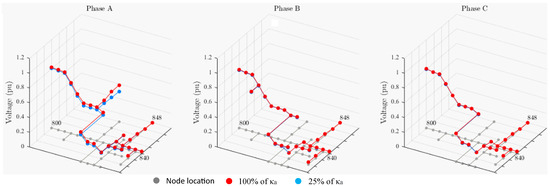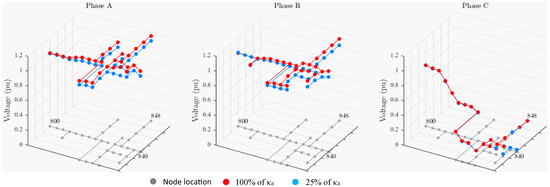 values in nodes with 100% and 25% of for IEEE 34-Node Test Feeder.