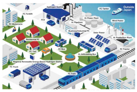 - Ministry of the Environment, P. for the C. of a H.S. Projects for the Creation of a Hydrogen Society. 2021. Available online: https://www.env.go.jp/seisaku/list/ondanka_saisei/lowcarbon-h2-sc/PDF/1108_suiso_pamphlet_E.pdf (accessed on 10 May 2022).