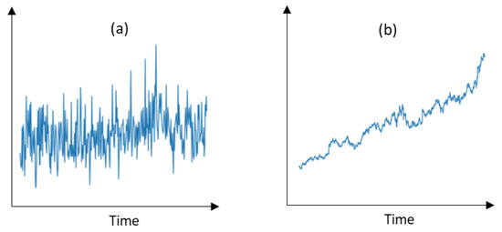 The difference between stationary and nonstationary time series: (a) stationary time series; (b) nonstationary time series.