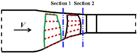 Due to the rotational effect of the turbomachinery, it is necessary to describe the flow behavior in the relative system and solve the governing equations for the relative velocity components. In the rotating frame of reference, the expressions on the left side of Equation (1) are as follows: