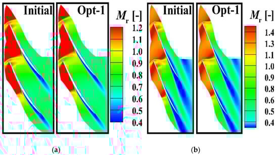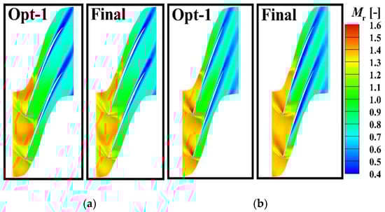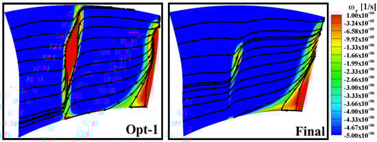 In order to enhance the readability of this paper, the main aerodynamic performance parameters and the flow details inside the channel of the initial case and the optimized case will be repeated below. In addition, the case after optimizing the R1 blade is called the opt-1 case, and the case after optimizing the R2 blade on the basis of the opt-1 case is called the final case in the following text.