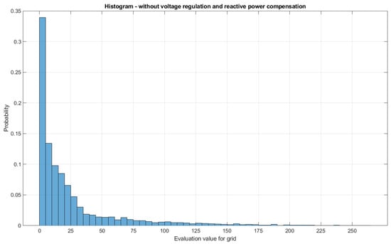 Figure 11. Histogram of evaluation value—without voltage regulation and with reactive power compensation.