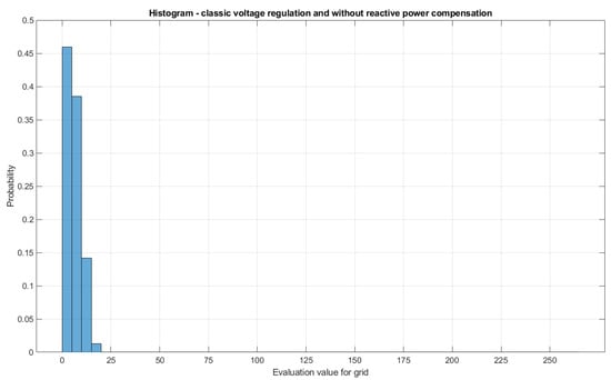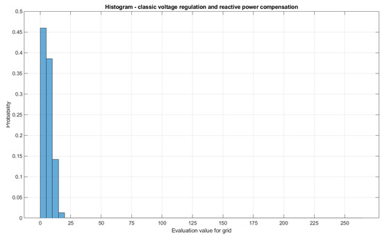 Figure 9. Histogram of evaluation value—classic voltage regulation and without reactive power compensation.