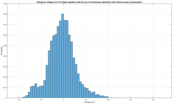 Figure 20. Histogram voltage error—evolutionary algorithm with reactive power compensation.