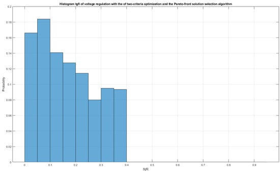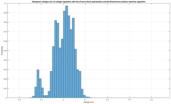 Figure 21. Histogram voltage error—use of two-criteria optimization and the Pareto-front solution selection algorithm.