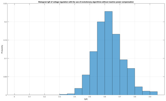 Figure 23. Histogram tgφ—evolutionary algorithm with reactive power compensation.