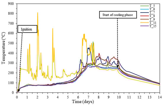 | Carbonization phase (from ignition up to the start of cooling phase) | 10 | 11 |