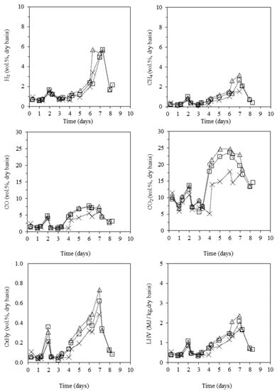 - Neves, D.; Matos, A.; Tarelho, L.; Thunman, H.; Larsson, A.; Seemann, M. Volatile gases from biomass pyrolysis under conditions relevant for fluidized bed gasifiers. J. Anal. Appl. Pyrolysis 2017, 127, 57–67. [Google Scholar] [CrossRef]