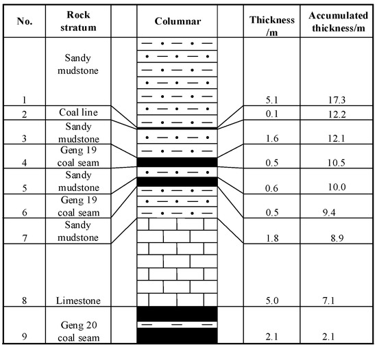 After mining, the height of the fracture zone in the Geng 20 coal seam is about 30.2 m. According to the comprehensive histogram of the Geng 20 working face (Figure 1) and the theoretical calculation of the fracture zone, the Geng 19 coal seam is about 6.8 m above the roof of the Geng 20 coal seam, and the Geng 19 coal seam is in the range of the fissure zone, and the fractures are fully developed. The coal seam is greatly affected by the mining of the Geng 20 working face, and the permeability of the Geng 19 coal seam will also be significantly increased.