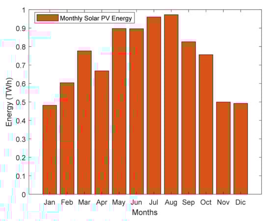 Figure 8 shows the monthly production of solar PV generation in Mainland Spain in 2019, where it is observed that the main production was reached during the summer months.