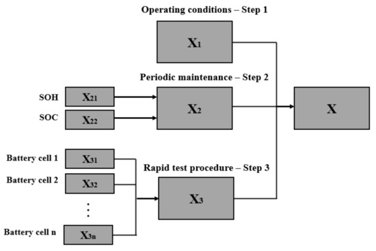 In Figure 1, X1 stores the battery values from continuous use and the factors influencing the service life of batteries; these values are very diverse and can be examined using several approaches. Data collection in this case means continuous backup of data from use. Conditions recommended for such exemption by supplementing the temperature data of the different load profiles (current and voltage). The initial data stored in this way can be a great help when starting after longer storage. These values are very diverse and can be examined from several approaches, thus the current work does not cover this.