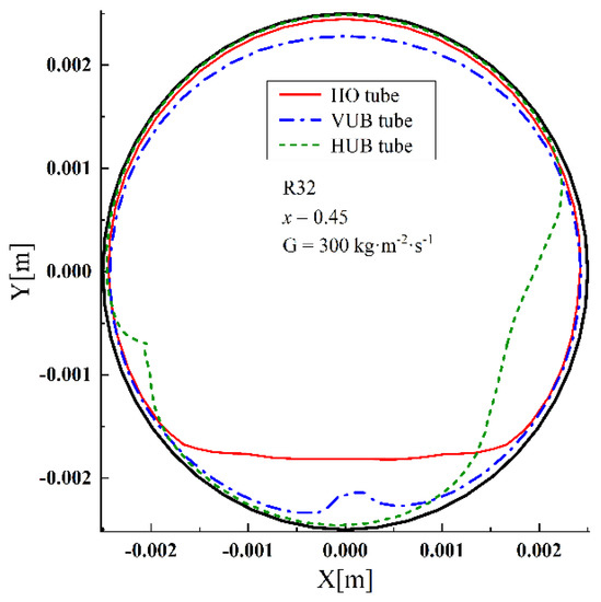 - Gu, X.; Wen, J.; Zhang, X.; Wang, C.; Wang, S. Effect of tube shape on the condensation patterns of R1234ze(E) in horizontal mini-channels. Int. J. Heat Mass Transf. 2019, 131, 121–139. [Google Scholar] [CrossRef]