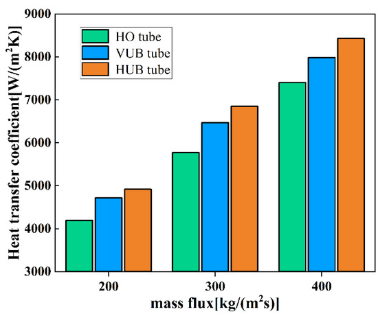 - The condensation HTC increases gradually with increasing vapor quality and mass flux in the three different tubes. Results show that the HTC for HO tube agrees well with four widely used empirical correlations. The HTC can be enhanced after flowing through the U-bend section, and the enhancement is more pronounced for the HUB tube compared to the VUB tube. Note that the mechanism of the flow pattern of R32 in the U-bend section is still complex, which is eligible to be further investigated with experimental tests in the future.