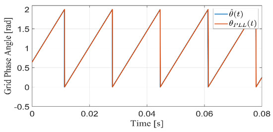 In this work, the grid angle is an unmeasurable and unknown parameter. Therefore, designing an observer for the grid angle is required to perform the transformations in the estimated reference frame [27]. This results in a rotating orthogonal axis system denoted as . After performing the transformation in the frame, the system shown in (6) can be written as