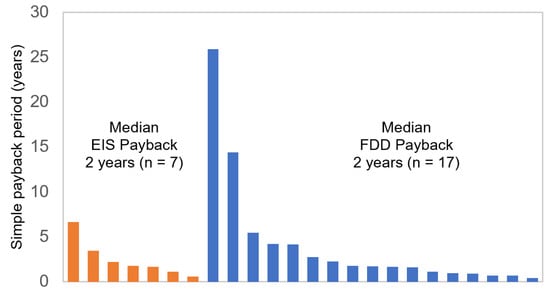 Estimated simple payback period of EIS and FDD (n = 24, 19 million m2 [206 million ft2]).