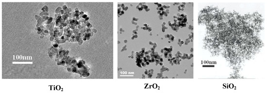 The nanomaterials used were purchased from US Research nanomaterials, Inc. The purity of these materials was greater than 99.5%. The nanoparticle sizes were confirmed through transmission electron microscope (TEM) characterization; see Figure 1, which is provided in the supplied material datasheet [29]. In addition, the dispersion of nanofillers in the prepared silicone rubber samples was examined using a JEOL field emission scanning electron microscope (FESEM). SEM images with a 0.5%wt concentration for the adopted nanofillers are shown in Figure 2. A good dispersion of nanoparticles in the silicone rubber nanocomposites samples can be observed for the adopted nanomaterials; however, some agglomerations are observed.