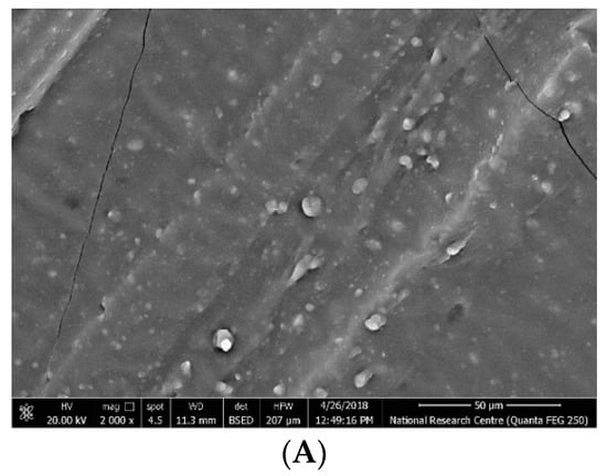 On the other hand, preparation procedures for the silicone rubber nanocomposite samples were performed using 10 g liquid silicone rubber mixed homogenously with 10 g of its hardener. Ethyl Methyl Ketone (2-butanone) solvent (with a purity greater than 99%, supplied by ReAgent) was added to the mixture to reduce its viscosity. A quantity of nanoparticles of the same specified types was then added to the mixture and stirred for 10 min (the same stirrer as that used for the transformer oil). In order to achieve a good dispersion of nanoparticles, the mixture was subjected to ultrasonic waves for 30 min (using the same ultrasonic homogenizer used in the transformer oil preparation). The mixture was left in a vacuum chamber at room temperature for 20 days to dry. Again, the vacuum chamber was used to prevent the formation of air bubbles in the prepared samples. These procedures were repeated for all the adopted concentration levels, i.e., 0.1, 0.5, 1 and 2%wt.